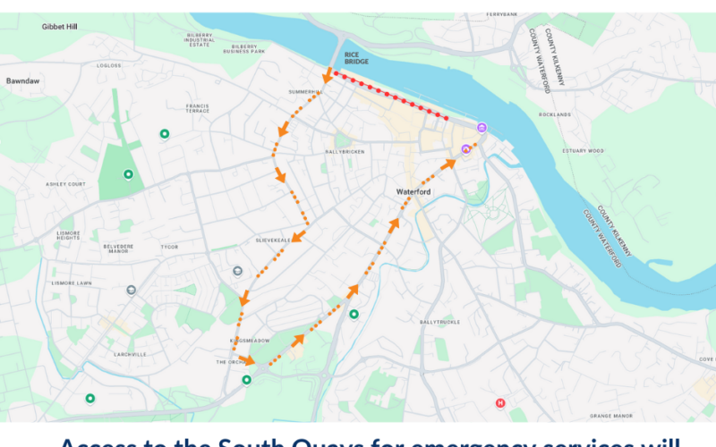 Waterford City and County Council and BAM wish to advise that the South Quays will be closed to inbound traffic from Rice Bridge from 8pm, Saturday April 12th to 6am, Monday April 14th inclusive. The South Quays inbound lane closure is to facilitate deep excavation works to connect to the existing foul sewer as well as the installation …Read More